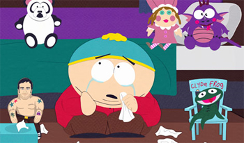 Of course, according to Cartman this is ALL Obama’s fault; he’s the president, he set up the test system, and because he’s black no one will blame him for anything. In fact, Cartman is beginning to feel like everyone is ganging up on him (the 1%) unfairly, and he becomes worried that the 99% are somehow out to get him. The other kids in his class just tell Cartman to stop complaining and grow up; and an off the cuff remark from Craig, “Yeah, why don’t you go home and cry to your stuffed animals again?” sets the whole episode in motion (wait for it).