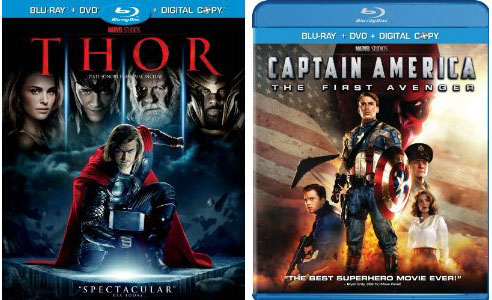 Thor and Captain America: The First Avenger cost between $20 and $35 depending on the format of your choice (DVD, Blu-Ray, 3D Blu-Ray).