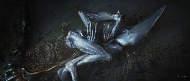 With a mission that progressively (and predictably) goes from bad to worse, I think I can now turn to what really excited me about the film… first, take a look at this very old, very early concept art by the legendary H.R. Giger for the Alien film:
