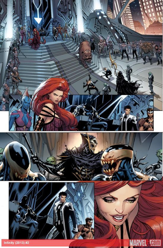 From all indications this seems an Avengers story, but let’s be clear, Infinity is not. It’s very telling when the Avengers are listed second to last on the roll call page. Writer Jonathan Hickman is providing readers with a galaxy spanning epic of which the Avengers are only a small part.