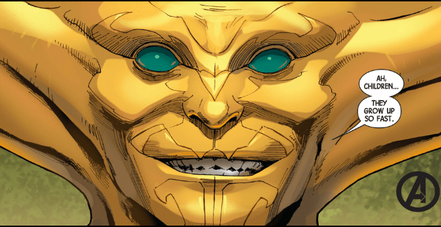 That said, I would put Ex Nihilo in the same category as Ares. As a villain in the early issues of Hickman’s Avengers he was dangerous, unpredictable, diabolical, and yes, nihilistic. This is not an easy makeover for me to buy. In this issue and a couple times previous, he has expressed regret and care. He even built a world for the refugees of the Battle of the Corridor, and even doubted his makers. I am not convinced, yet.